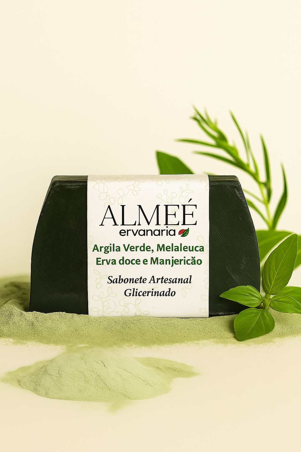 Sabonete Glicerinado Argila Verde, Melaleuca, Erva Doce e Manjericão